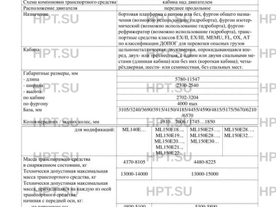 | Назначение | бортовая платформа с тентом или без, фургон общего назначения (возможно использование гидроборта), фургон изотермический (возможно использование гидроборта), фургонрефрижератор (возможно использование гидроборта), транспортные средства классов EX/II, EX/III, MEMU, FL, OX, AT по классификации ДОПОГ для перевозки опасных грузов |