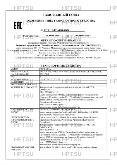 | Предприятие-изготовитель | ENERGICA MOTOR COMPANY SPA |