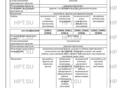 Оборудование ТС система регулирования давления воздуха в шинах (для мод. на базе С41А23, С42А43); трансформируемые сиденья второго ряда (для мод. на базе С42А43); система электронного контроля устойчивости (кроме мод. на базе С41А23, С42А43); устройство вызова экстренных оперативных служб с ручным включением и автоматическим срабатыванием при опрокидывании; дневные ходовые огни по заказу: защита от разбрызгивания из-под колес (для мод. на базе С4?R?3, С4?R?6); устройство ограничения максимальной скорости (функцию устройства выполняет электронный блок управления двигателем) (для мод. на базеС4?R?3, С4?R?6); трансформируемые сиденья второго ряда (для мод. на базе С4?R1?, С4?R3?, С4?А?3, С41RB3); тахограф (для мод. на базе С4?R1?, С4?R3?, С4?А?3, С41RB3); совмещенная система вентиляции, отопления и кондиционирования (система управления климатом) с ручным управлением (для мод. на базе С4?R1?, С4?R3?, С4?А?3, С41RB3, С4?А3? С4?R92, С4?R02); моторный тормоз замедлитель (для мод. на базе С4?R13, С4?R33); подушка безопасности водителя (для мод. на базе С4?R92, С4?R02); подушка безопасности водителя и подушка безопасности передних пассажиров (для мод. на базе С4?R92, С4?R02); лебедка, желтые сигнальные фонари, фонари лунного света, багажники, лестницы, фонари наружного освещения, маркиза, специальное оборудование в зависимости от назначения автомобиля, спец. крепление оборудования, рундуки, стеллажи, генератор, фара - искатель, автономный отопитель, дополнительный отопитель, предпусковой подогреватель; продольные боковые откидные сиденья (скамьи) или продольные боковые откидные и съемные средние сиденья (скамьи), используемые только во время стоянки, тахограф, коробка отбора мощности, магнитола, кондиционер с хладагентом R134A; передние противотуманные фары, второй топливный бак, наружный воздухозаборник, раздаточная коробка с возможностью отбора мощности, тягово-сцепное устройство с пневмовыводами для подключения прицепа и огни автопоезда с противосолнечным козырьком (для мод. на базе С41А23, С42А43), механическая лебедка, мед. оборудование для (для мод. 2250J1, 2250JA, 2250JB, 2250JC, 2250JD, 2250JE, 2250JJ, 2250JK)