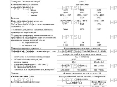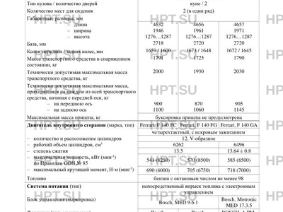 | ДВС | Ferrari, F 140 FC Ferrari, F 140 FG Ferrari, F 140 GA |