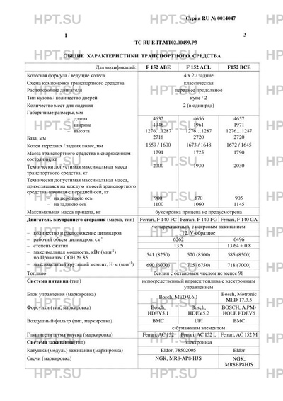 | Предприятие-изготовитель | Ferrari S.p.A. Via Emilia Est, 1163, 41122 Modena, Италия. |