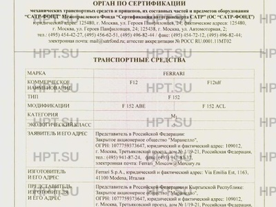 | Марка ТС | FERRARI |