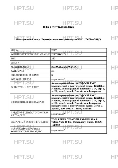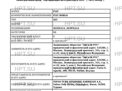 | Коммерческое наименование | FIAT DOBLO |