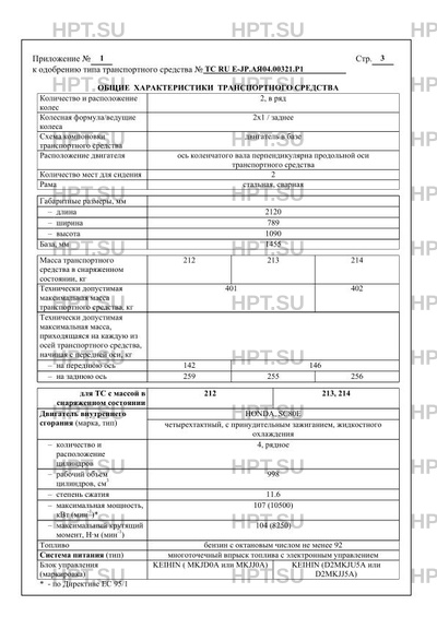 | Представитель изготовителя | Представитель в Российской Федерации, Республике Беларусь, Республике Казахстан, Республике Армения и Киргизской республике: Общество с ограниченной ответственностью «Хонда Мотор РУС». юридический и фактический адрес: 108809, город Москва, п. Марушкинское, деревня Шарапово, улица Придорожная, строение 1, Российская Федерация. ОГРН: 1047796094125. Тел. (495) 745-20-80. Факс (495) 745-20-81. |