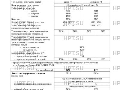Предприятие-изготовитель Fuji Heavy Industries Ltd., юридический и фактический адрес: Ebisu Subaru Bldg. 1-20-8, Ebisu, Shibuya-ku, Tokyo, Япония