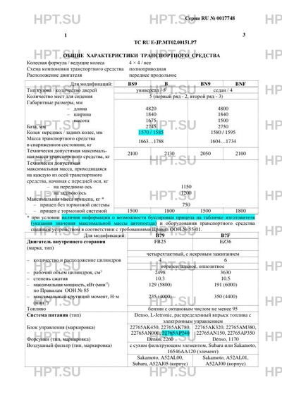 | Заявитель | Общество с ограниченной ответственностью "СУБАРУ МОТОР". юридический и фактический адрес: 115054, г. Москва, ул. Щипок, 5/7, стр.2, 3, Российская Федерация. ОГРН: 1027700174920. Тел. +7 (495) 926-46-46. Факс +7 (495) 926-18-63. Email customer@subaru-motor.ru. |
