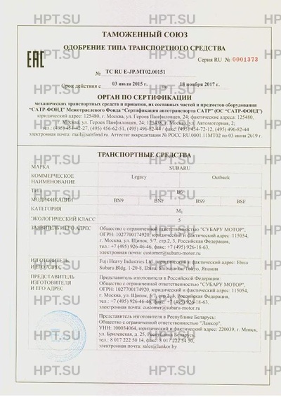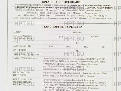 Заявитель Общество с ограниченной ответственностью "Субару Мотор", ОГРН 1027700174920, 115054, г. Москва, ул. Щипок, 5/7, стр.2, 3, Российская Федерация,тел. +7 (495) 926-46-46, факс: +7 (495) 926-18-63, электронная почта: customer@subaru-motor.ru