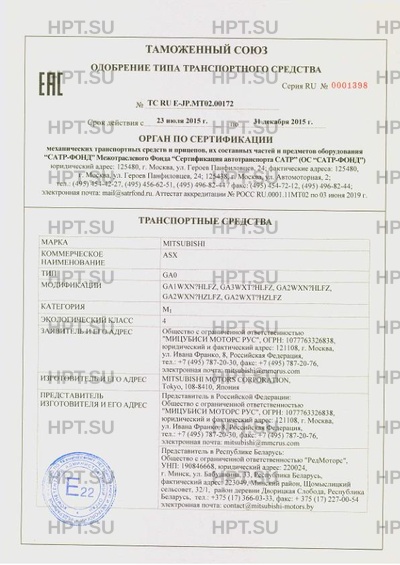 Предприятие-изготовитель MITSUBISHI MOTORS CORPORATION, Tokyo, 108-8410, Япония