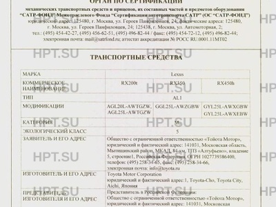| Коммерческое наименование | RX200t, RX350, RX450h |