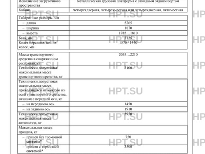 | Исполнение загрузочного пространства | металлическая грузовая платформа с откидным задним бортом |
