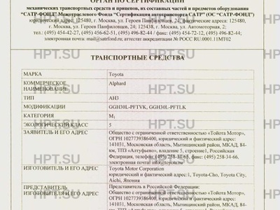 Коммерческое наименование Alphard / AH3 / GGH30L-PFTVK, GGH30L-PFTLK