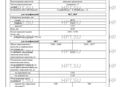 | Тип ТС | Модификации Экологический класс SK7 5 SK9 6 |