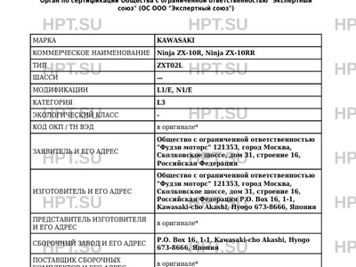 | Марка ТС | KAWASAKI |