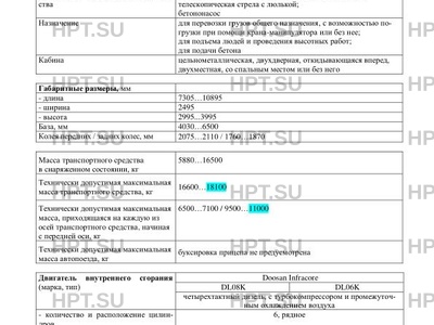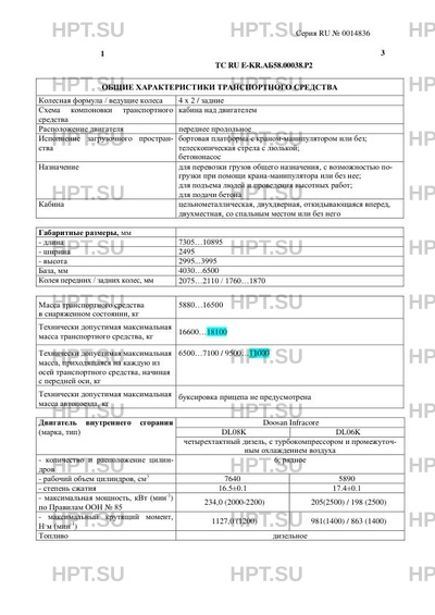 | Оборудование ТС | устройство вызова экстренных оперативных служб По заказу: кондиционер (хладагент R134a), кран-манипулятор, подъемник с рабочей платформой, бетононасос |