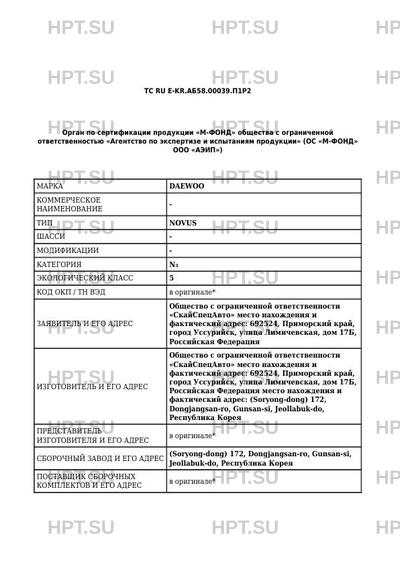 | Сцепление | PyoungHwa или Seojin или SECO (Seojin) или VPH (Valeo PyoungHwa), сухое, фрикционное, однодисковое, гидравлический привод с пневмоусилителем Hwa), сухое, фрикционное, однодисковое, гидравлический привод с пневмоусилителем |