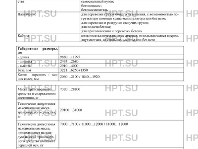 | Назначение | для перевозки грузов общего назначения, с возможностью погрузки при помощи крана-манипулятора или без него; для перевозки и разгрузки сыпучих грузов; для подачи бетона; для приготовления и перевозки бетона |