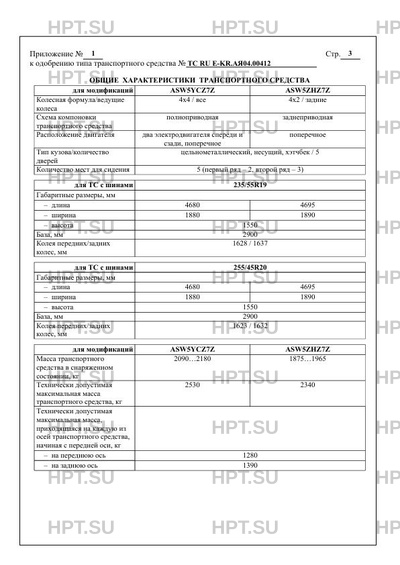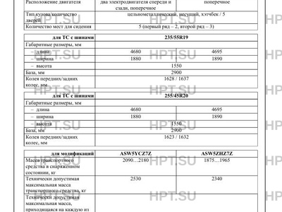 | Кол-во мест для сидения (M2, M3, L) | 5 (первый ряд - 2, второй ряд - 3) вый ряд - 2, второй ряд - 3) для ТС с шинами 235/55R19 |