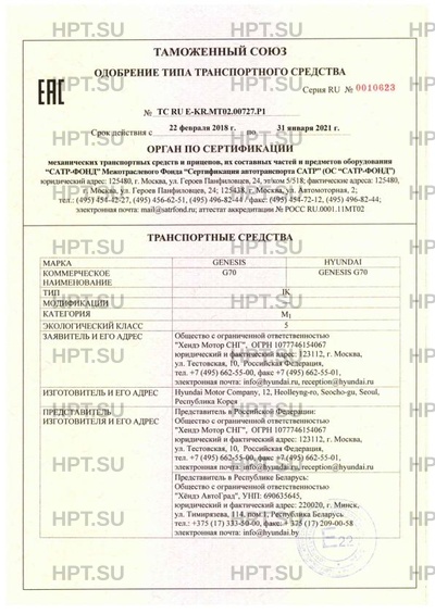 Представитель изготовителя Общество с ограниченной ответственностью "Хендэ Мотор СНГ". 123317, г. Москва, ул. Тестовская, 10, Российская Федерация. ОГРН: 1077746154067. Тел. +7 (495) 662-55-00. Факс +7 (495) 662-55-01.