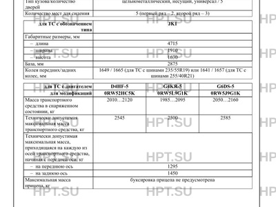 | Кол-во мест для сидения (M2, M3, L) | 5 (первый ряд - 2, второй ряд - 3) для ТС с обозначением типа JK1 |