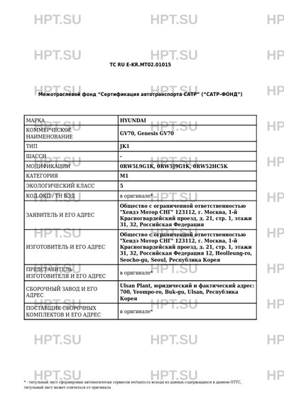 | Марка ТС | HYUNDAI, Genesis Коммерческое наименование Genesis GV70 HYUNDAI Genesis GV70 |