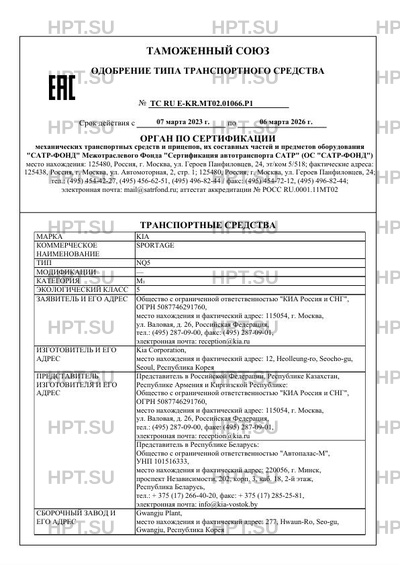 | Коммерческое наименование | SPORTAGE |