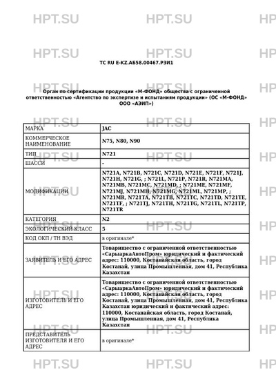 ТС RU E-KZ.АБ58.00467.Р3И1
