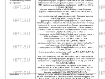 | Оборудование ТС | устройство вызова экстренных оперативных служб, электронная система курсовой устойчивости (ESC), кондиционер (все); специальный предупреждающий огонь автожелтого цвета (N75-R, N80-R, N90-R, N120-R, N75-F, N80-F, N90-F, N120-F, N75-J, N80-J, N90-J, N120-J и N75-E, N80-E, N90-E, N120-E-«Дорожный мастер») по заказу: обогрев зеркал, аудиосистема, электростеклоподъемники, GPS оборудование, тахограф, кондиционер, передние противотуманные фары, устройство ограничения максимальной скорости (все); гидроборт (N75-А, N80-A, N90-A, N120-A, N75-В, N80-B, N90-B, N120-B); КМУ (N75-А, N80-A, N90-A, N120-A, N75- F, N80-F, N90-F, N120-F, N75, N80-G, N90-G, N120-G); отвал, щетка, поливомоечное, вакуумное, пескоразбрасывающее и другое технологическое оборудование, дополнительные фары, передние габаритные огни и указатели поворота (N75-R, N80-R, N90-R, N120- R); кондиционер в фургоне. сиденья (N75-E, N80-E, N90-E, N120-E); фара освещения рабочей зоны в задней части транспортного средства, аутригеры (N80-W, N90-W, N120-W); фары освещения рабочей зоны спереди и/или сзади транс-портного средства (N80-V, N90-V, N120-V) |