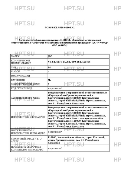 | Заявитель | Товарищество с ограниченной ответственностью "СарыаркаАвтоПром" юридический и фактический адрес: 110000, Костанайская область, город Костанай, улица Промышленная, дом 41, Республика Казахстан |