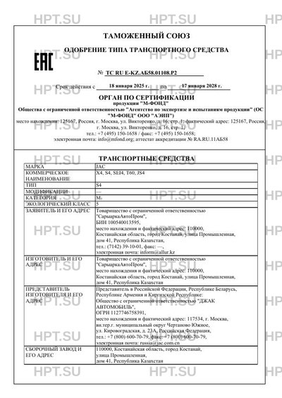 | Номер документа | ТС RU Е-KZ.АБ58.01108.Р2 |
