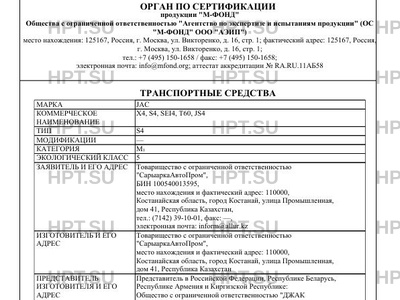 | Тип ТС | X4, S4, SEI4, T60, JS4 |
