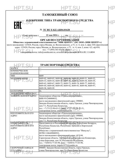 Полное ОТТС ТС RU E-KZ.АЖ04.01628