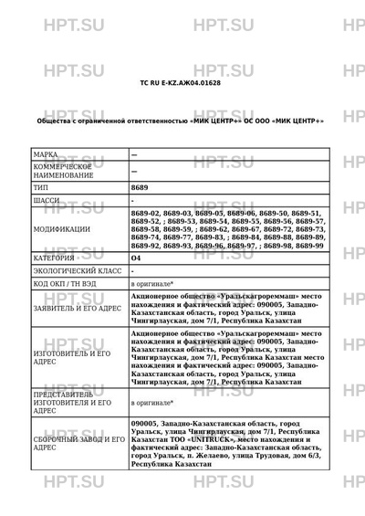 Номер документа ТС RU Е-KZ.АЖ04.01628