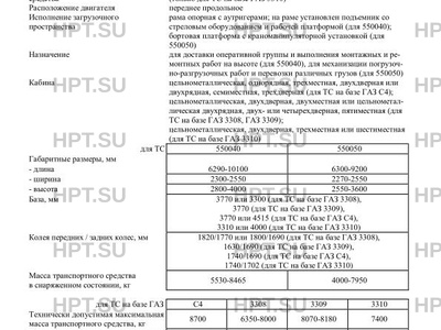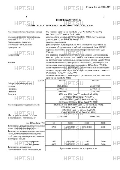 | Тип ТС | Транспортные средства 550040, 550050 изготавливаются на базе шасси и транспортных средств ГАЗ C4 (коммерческое наименование – ГАЗон NEXT, модификации С41R11, С41R13, С41R31, С41R33, С42R31, С42R33), ГАЗ 3308 (модификации 33081, 33086, 33088), ГАЗ 3309 (модификации 3309, 33096, 33098), ГАЗ 3310 (коммерческое наименование – Валдай, модификации 331060, 331061, 331063); Транспортные средства не предназначены для перевозки опасных грузов |