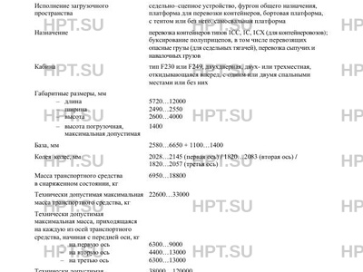 | Дополнительная информация | В случае несоответствия параметров транспортных средств значениям, установленным в пунктах 2.1 и 2.2 приложения № 5 к техническому регламенту Таможенного союза «О безопасности колесных транспортных средств», для передвижения транспортных средств по территории государств — членов Таможенного союза необходимо оформление специального разрешения. Транспортные средства допускаются к буксировке полуприцепов, перевозящих опасные грузы, при наличии на табличке изготовителя или на табличке с перечнем номеров официальных утверждений обозначения транспортного средства согласно классификации ДОПОГ и номера сообщения об официальном утверждении по Правилам ООН № 105. Транспортные средства, оснащенные двигателями MX-11 ??? H? и MX-13 ??? H?, соответствуют европейским экологическим нормам Euro-6. |
