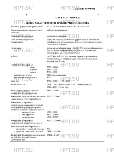 | Тип ТС | В случае несоответствия параметров транспортных средств значениям, установленным в пунктах 2.1 и 2.2 приложения № 5 к техническому регламенту Таможенного союза "О безопасности колесных транспортных средств", для передвижения транспортных средств по территории государств - членов Таможенного союза необходимо оформление специального разрешения. Транспортные средства, имеющие на табличке изготовителя сведения о соответствии требованиям Правил ЕЭК ООН № 105 и сведения о классе транспортного средства в соответствии с ДОПОГ, допускаются к буксированию полуприцепов, перевозящих опасные грузы. Транспортные средства, оснащенные двигателями MX-11 ??? H1 и MX-13 ??? H1, соответствуют европейским экологическим нормам Euro-6. |
