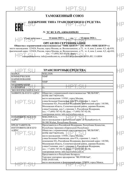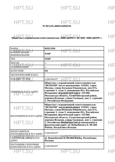 | Номер документа | ТС RU Е-PL.АЖ04.01058.П1 |