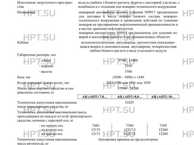 | Оборудование ТС | специальный предупреждающий огонь синего цвета, СГУ, отсеки для размещения пожарно-технического, спасательного, специального оборудования, пожарно-техническое вооружение согласно ТУ, по заказу - предпусковой подогреватель, кондиционер |