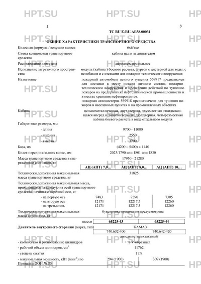 | Дополнительная информация | В связи с превышением технически допустимой максимальной массы и(или) максимальной массы, приходящейся на среднюю и заднюю оси транспортного средства 569917, 569918 значений, указанных в Приложении № 5 к техническому регламенту Таможенного союза о безопасности колесных транспортных средств, для передвижения таких транспортных средств по территории государств – членов Таможенного союза, в случае фактического превышения транспортным средством установленных весовых ограничений, необходимо оформление специального разрешения. При изготовлении транспортных средств 569917, 569918 используются шасси КАМАЗ, тип 65225, модификации 65225-43, 65225-44, коммерческое наименование К3340, К3342. Транспортное средство 569917 имеет коммерческое наименование АПТ… Транспортное средство 569918 имеет коммерческое наименование АЦ… Данное одобрение типа транспортного средства является распространением ОТТС № TC RU Е-RU.MT20.00002, выданного на малую партию. |