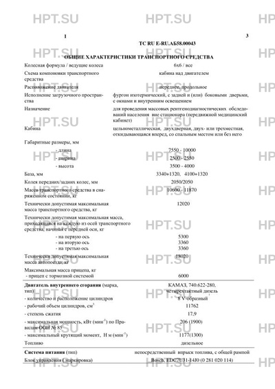 | Дополнительная информация | При изготовлении транспортных средств 47752К используются шасси КАМАЗ, тип 5350, модификация 5350-42, коммерческое наименование В1728. Данное одобрение типа транспортного средства является распространением ОТТС № Е-RU.МТ20.А.00198.Р1, выданного на малую партию до вступления в силу Технического регламента Таможенного союза «О безопасности колесных транспортных средств». |
