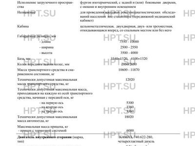 | Оборудование ТС | специальное и вспомогательное медицинское оборудование, встроенная мебель, инженерные системы жизнеобеспечения, ящики для хранения инструментов и принадлежностей, лестница боковая и (или) задняя, по заказу : подогреватель двигателя, лебедка, кондиционер |