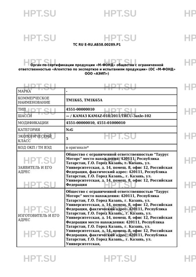 | Номер документа | ТС RU Е-RU.АБ58.00289.Р1 |