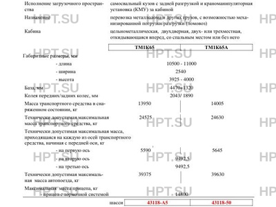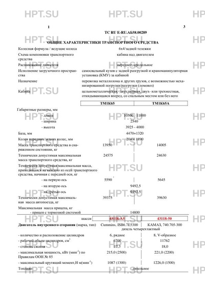 Тип ТС При изготовлении транспортных средств типов 4551-00000010, коммерческое наименование ТМ1К65 и 4551-01000010, коммерческое наименование ТМ1К65А используются шасси КАМАЗ, тип 65115, модификации 65115-А5 (вариант 2) и 65115-50, коммерческое наименование Т2530. В связи с несоответствием параметров транспортных средств значениям, установленным в п. 2.1 и 2.2 Приложения № 5 к техническому регламенту Таможенного союза «О безопасности колесных транспортных средств», для передвижения транспортных средств по территории государств - членов Таможенного союза, в случае фактического превышения транспортным средством установленных весовых ограничений, необходимо оформление специального разрешения.