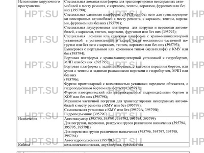| Оборудование ТС | специальный предупреждающий огонь автожелтого цвета (для 395790, 395791, 395792, 395793, 395799, 39579С) По заказу: коробка отбора мощности, предпусковой подогреватель, холодильная установка, гидроборт, устройство вызова экстренных оперативных служб, обтекатель на кабину, фаркоп тип шар или палец-петля, пневмовыводы для прицепа, каркас тента, тент, сдвижная крыша, сдвижная штора, ворота |