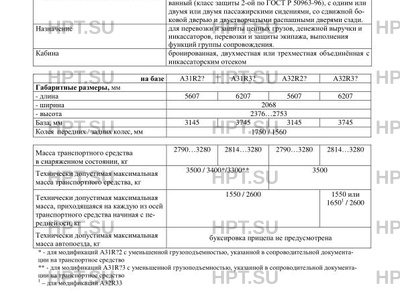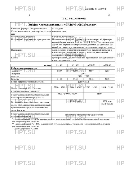| Тип ТС | При изготовлении транспортного средства 287302 используются базовые транспортные средства и шасси ГАЗ, тип A, модификаций: ГA3-A31R23, ГАЗ-А31R33, ГA3-A32R23, ГA3-A32R33, ГАЗ- А31R22, ГАЗ-А31R32, ГA3-A32R22, ГA3-A32R32 4 (для дв. кроме А275, Cummins ISF 2.8s5161P) ЭКОЛОГИЧЕСКИЙ КЛАСС 5 (для дв. А275, Cummins ISF 2.8s5161P) Устройством вызова экстренных оперативных служб (УВЭОС) не оснащаются ТС, изготовленные на базе ТС / шасси с идентификационными номерами (VIN): X96A31R32H0836223, X96A31R32H0836769, X96A31R22H0830985, X96A31R22H0831027, X96A31R22H0831060, X96A31R22H0831085, X96A31R22H0831015, X96A31R22H0831037, X96A31R22H0831013, X96A31R22H0831072, X96A31R22H0830978, X96A31R22H0834935, X96A31R22H0830851, X96A31R22H0830885, X96A31R22H0830948, X96A31R22H0831010, X96A31R22H0830929. |
