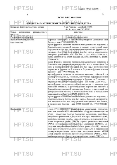 | Тип ТС | Модификации шасси / базовых ТС: ГАЗ - 33086, ГАЗ-33088 (для мод. 47953-0000010-… |