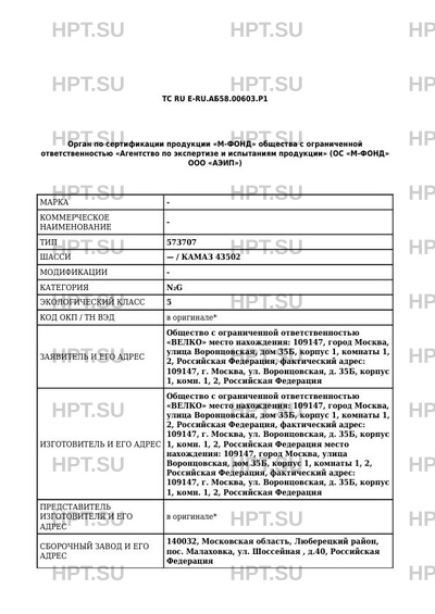 | Номер документа | ТС RU Е-RU.АБ58.00603.Р1 |