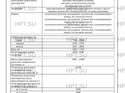 | Исполнение загрузочного пространства | цистерна чемоданного сечения; цистерна эллиптического сечения; цистерна круглого сечения |