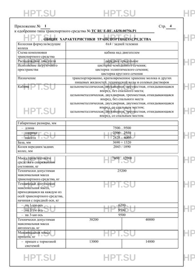 | Оборудование ТС | устройство ограничения максимальной скорости (функцию устройства ограничения максимальной скорости выполняет электронный блок управления двигателем); устройство вызова экстренных оперативных служб с функцией автоматического срабатывания при опрокидывании по заказу: предпусковой подогреватель; кондиционер (хладагент R134a); передние противотуманные фары; тахограф, аппаратура спутниковой навигации, рукава для подачи жидкости, барабан для намотки рукавов, насос с гидравлическим приводом, насос с механическим приводом |