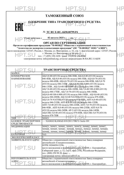 | Номер документа | ТС RU Е-RU.АБ58.00799.Р4 |
