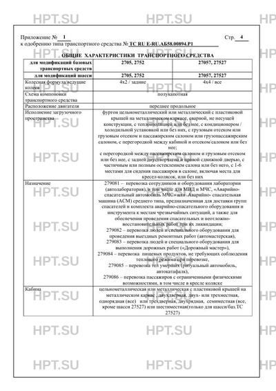| Тип ТС | Транспортные средства изготавливаются на базе транспортных средств модификаций: 2705, 27057, 2752, 27527 Транспортные средства изготавливаются на базе шасси модификаций: 2705, 27057, 2752, 27527 При изготовлении транспортных средств типа 2790 используются шасси и базовые транспортные средства ГАЗ, тип 3302, модификации 2705, 27057, коммерческое наименование ГАЗель БИЗНЕС и модификации 2752, 27527, коммерческое наименование Соболь. Транспортные средства, изготовленные на шасси /базе транспортных средств ГАЗ, 27057, 27527 относятся к категории N1G, транспортные средства, изготовленные на других шасси/ базовых транспортных средствах относятся к категории N1. Суммарное число мест для пассажиров в кабине и салоне, включая места для кресел-колясок, не должно превышать восьми. Транспортные средства 279084 предназначены для перевозки как грузов общего назначения, так и перевозки пищевых продуктов, не требующих соблюдения теплового режима при перевозке При изготовлении транспортных средств типа 2790 допускается использование аналогичных по технической характеристике шасси/базовых транспортных средств ГАЗ (с такими же обозначениями модификаций шасси/базовых транспортных средств, как и в этом ОТТС), выпущенными по предыдущим версиям ОТШ/ОТТС, указанных в Приложении № 2 этого ОТТС. Главная передача с передаточным числом 4.556 применяется только на шасси/баз.ТС 27527, 27057 с двигателем УАЗ. На шасси/баз.ТС 27527, 27057 с двигателем Cummins/ Huadong(HD) , а также на шасси/баз.ТС 2705, 2752 применяется главная передача с передаточным числом 4.3. |